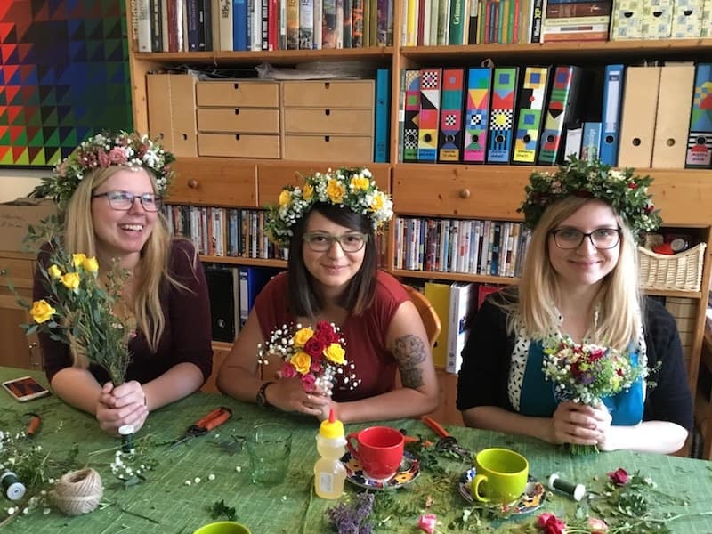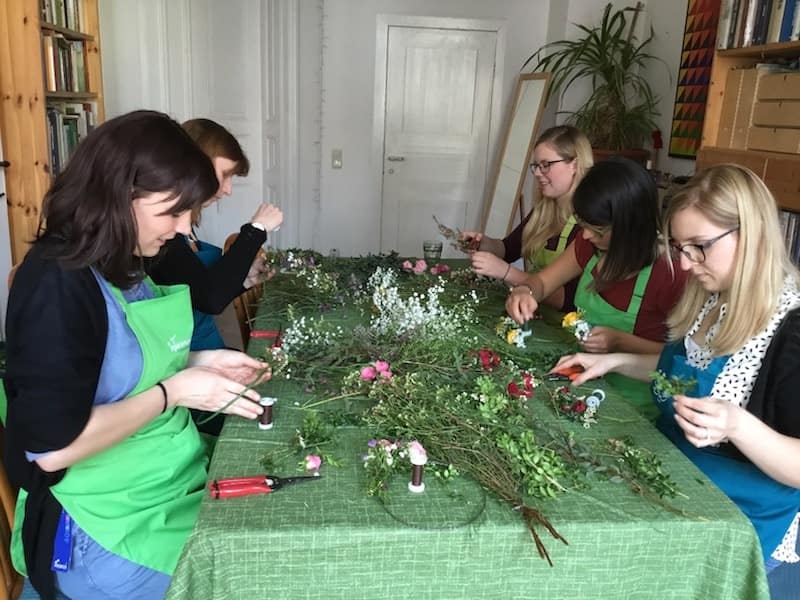 Wiesengrün Leipzig bietet Workshops rund um das Thema Blumen, Kräuter & Kränze. Lernen Sie ohne Vorkenntnisse das Binden von Kränzen, das Herstellen von Blumenarrangements und Gestecken. Beschenken Sie Ihre Liebsten oder machen Sie sich selbst eine Freude!